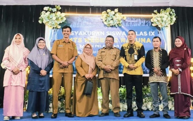 Natuna, Pendidikannasional.id — Acara tasyakuran perpisahan siswa kelas IX MTsN 2 Natuna yang berlangsung di Aula RM Sisir Basisir dipenuhi suasana haru dan kebersamaan. Kegiatan ini menjadi peluang untuk melepaskan para siswa yang telah menyelesaikan pendidikan mereka serta memperkuat hubungan antara madrasah, orang tua siswa, berbagai tokoh masyarakat, dan pemangku kepentingan pendidikan di Natuna.( 27/05/2025 ).