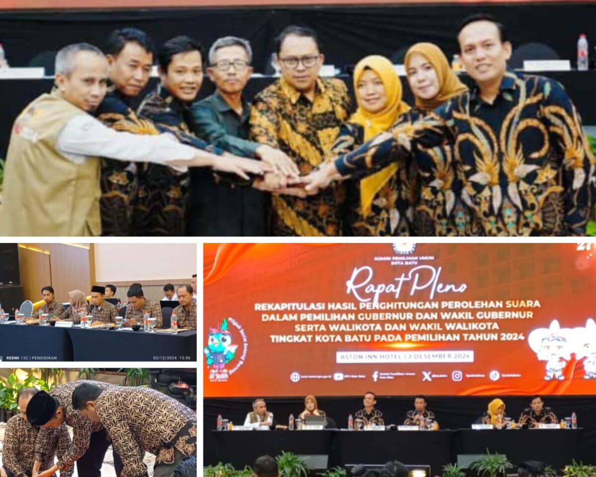 Komisi Pemilihan Umum ( KPU ) Kota Batu menggelar rapat pleno rekapitulasi hasil penghitungan perolehan suara dalam pemilihan Gubenur dan Wakil Gubenur serta Wali Kota dan Wakil Wali Kota Tingkat Kota Batu pada pemilihan tahun 2024.