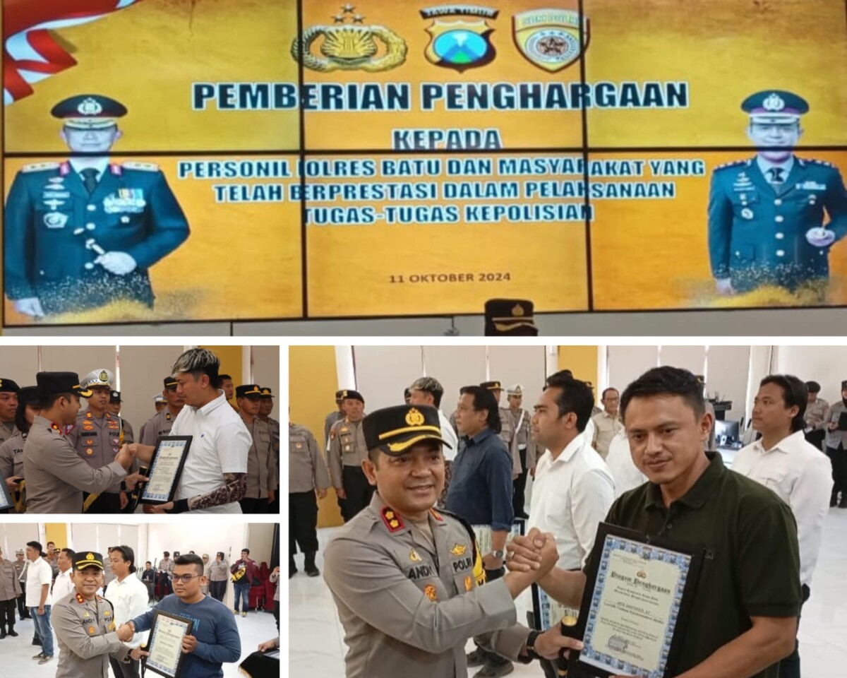 Selain memberikan apresiasi kepada masyarakat umum dan lurah, penghargaan ini juga diberikan kepada enam anggota Satreskrim Polres Batu.