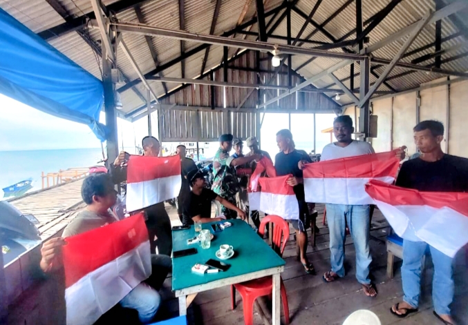 Tak hanya di sekitar Lanud, bendera juga dibagikan kepada nelayan di Kelurahan Batu Hitam, Kecamatan Bunguran Timur, yang sedang bersiap melaut.
