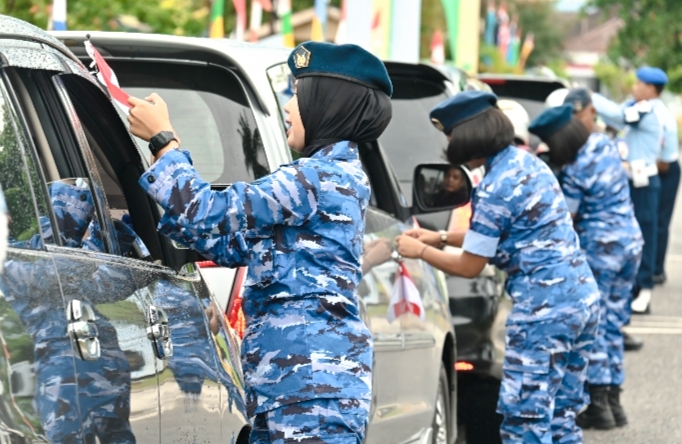 TNI AU Lanud Raden Sadjad Bagikan 1.000 Bendera Merah Putih di Natuna untuk Semarakkan HUT ke-80 RI