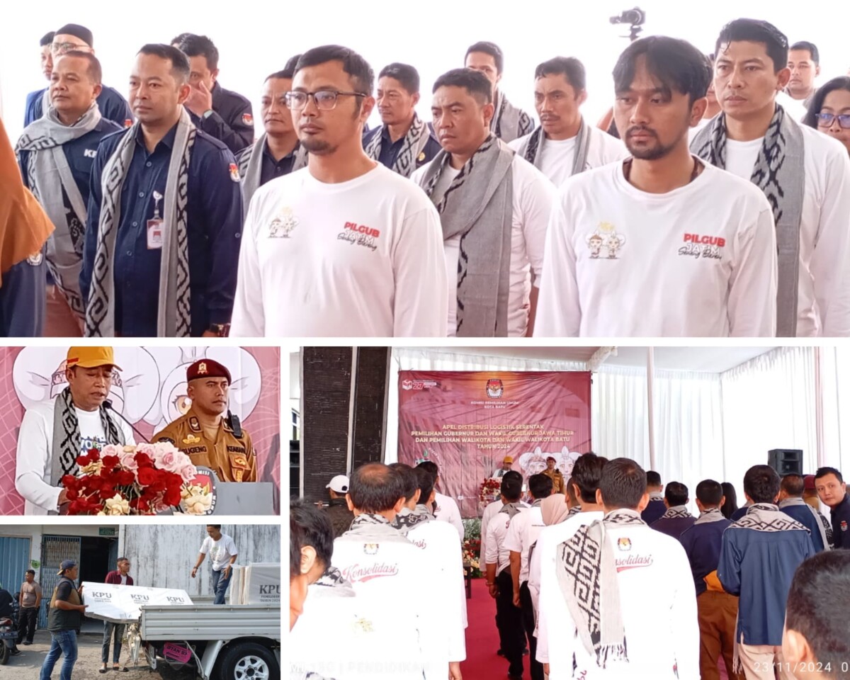 Batu, Pendidikannasional.id – Saat ini Komisi Pemilihan Umum ( KPU ) Kota Batu mengadakan Apel kesiapan distribusi logistik pilkada 2024, wali kota dan wakil wali kota, gubenur dan wakil gubernur, yang bertempat di lapangan apel sekitar pukul 08.00 wib pada Sabtu, 23 November. Turut dihadiri oleh TNI-Polri,Komisioner KPU, PPK, PPS.
