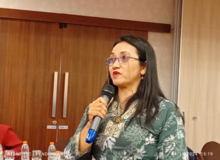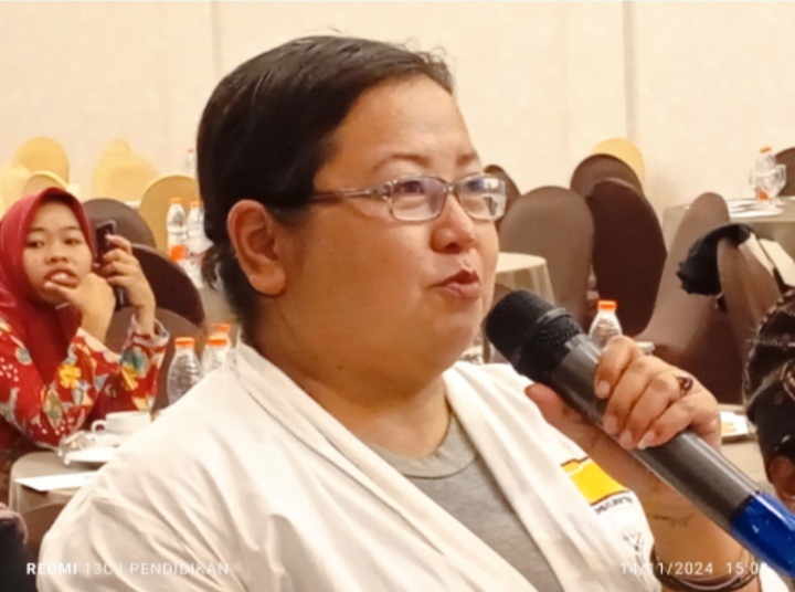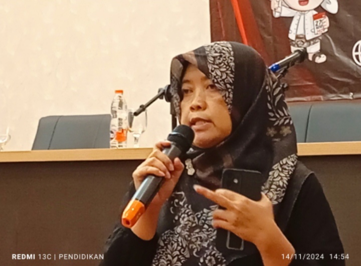 Tenty Yuana selaku Divisi Hukum dan Pengawasan KPU Kota Batu memaparkan tentang tahapan-tahapan pilkada 2024, dari awal sampai pada bilik di setiap TPS.