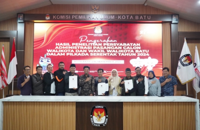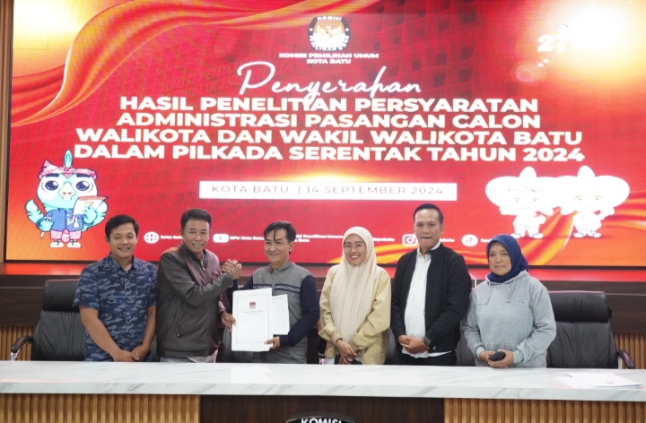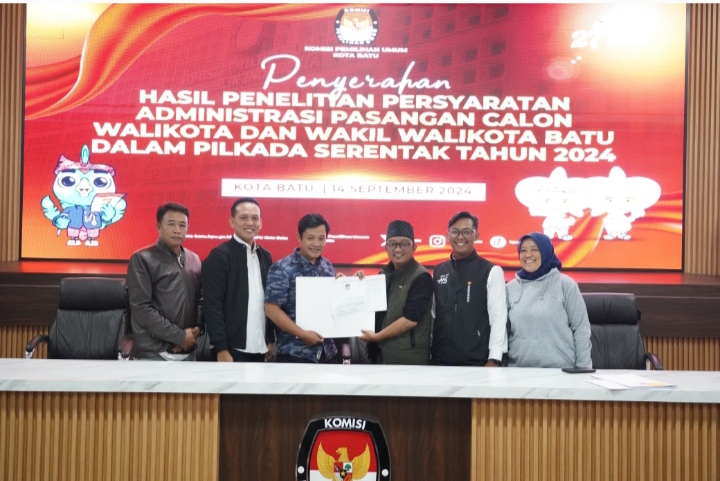Batu, Pendidikannasional.id – KPU Kota Batu telah menuntaskan tahapan Penelitian Persyaratan Administrasi Bakal Pasangan Calon (bapaslon) Wali Kota dan Wakil Wali Kota Batu dalam Pilkada Serentak Tahun 2024. Hasil penelitian persyaratan bapaslon di berikan digedung KPU Kota Batu Sabtu, ( 14/09/2024 ) malam.