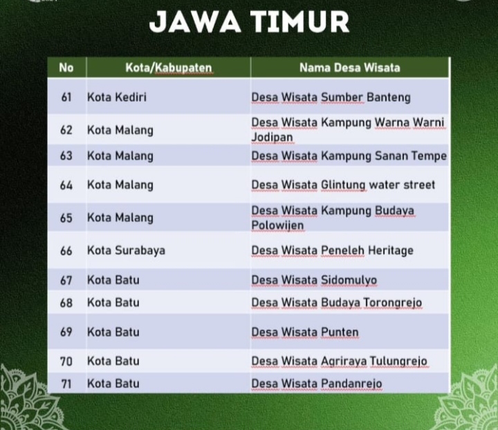 016 desa se-Indonesia, Kota Batu tercatat 8 desa wisata namun hanya 5 desa wisata yang masuk 500 besar.
