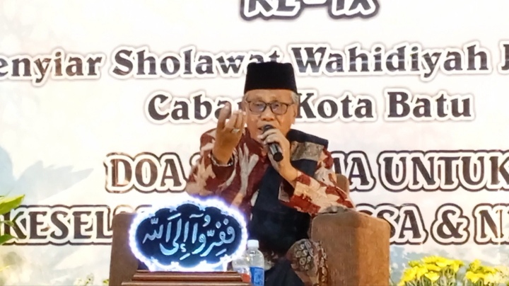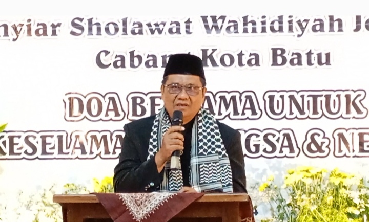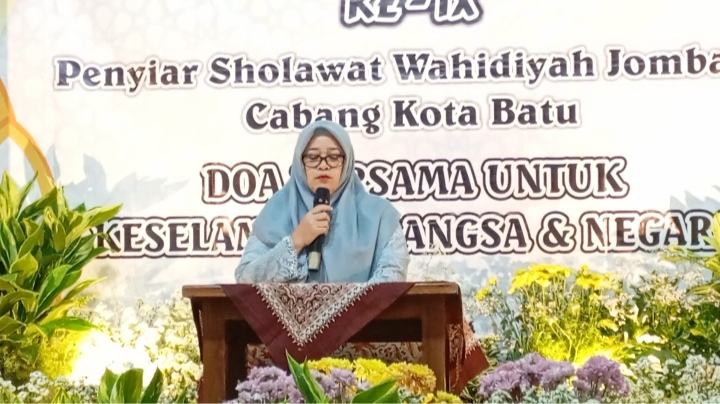 Pada kesempatanya.Ketua Koordinator Penyiar Sholawat Wahidiyah Cabang Jombang Kota Batu.Eni Musfirotun Mustofsiroh, S.ST., MM menyampaikan, bahwa dalam rangka Do`a bersama untuk keselamatan Bangsa dan Negara. Serta sebagai wujud solidaritas ,kepedulian dan keprihatinan ini, mari kita laksanakan dengan sungguh sungguh.
