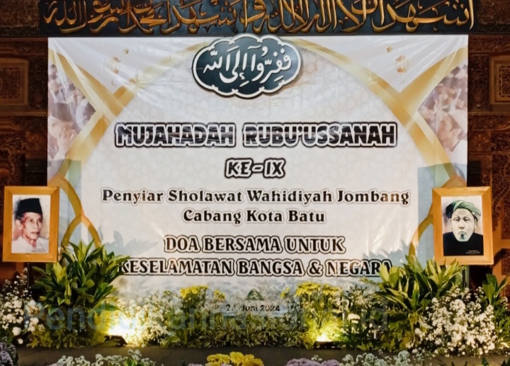 Batu, Pendidikannasional.id – Dalam rangka doa bersama untuk keselamatan Bangsa dan Negara. Kini Penyiar Sholawat Wahidiyah Cabang Jombang Kota Batu,telah menggelar Mujahadah Rubu’ussanah Ke-IX, yang bertempat di Gedung Masjid Brigjen Soegiyono Balai Among Tani Jl. Panglima Sudirman No. 507,Pesanggrahan,Kec Batu, Kota Batu. Pada hari Sabtu, ( 22/06/2024 ) malam.