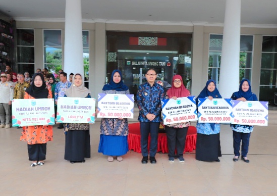 Selain beasiswa untuk guru, Aries juga memberikan hadiah umroh kepada dua guru berprestasi, yaitu Loulyta Sari dari TK ABA 1 Kota Batu dan Nita Velani dari SMP Taman Siswa Kota Batu.