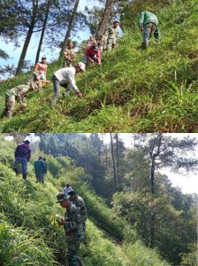 Dengan sangat antusias masyarakat bersama TNI melakukan Karyabakti dan penghijauan di area Gunung Banyak Kelurahan Songgokerto Kota Batu.