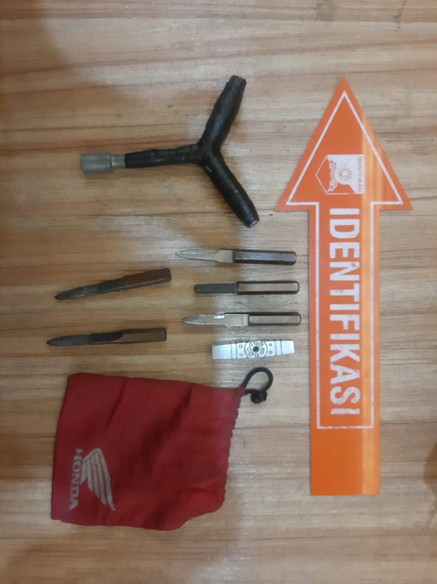 Adapun Barang Bukti yang diamankan meliputi 1 (satu) unit sepeda motor merk Honda Beat warna Hitam Nopol N-2780-LR, Honda Beat warna Hitam Tanpa plat Nomor, 1 (satu) buah helm merah merk INK, 1 (satu) buah helm putih merk Honda ESP, 2 (dua ) set kunci T, 1 (satu) pasang Plat Nomor Nopol: AG-4904-KBC dan 1 (Satu) buah sweater warna abu-abu.
