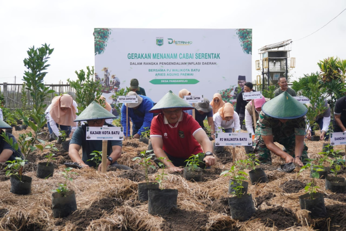 Kota Batu adalah salah satu pemasok utama cabai di Jawa Timur. Dengan melakukan penanaman cabai secara bersama-sama di 23 desa, termasuk di Desa Pandanrejo, tujuan kita adalah untuk mengurangi tingkat inflasi di wilayah tersebut. Proyek penanaman ini melibatkan lebih dari 20. 000 pohon cabai, dengan perincian 3. 840 bibit ditanam di Kecamatan Batu, 5. 000 bibit ditanam di Kecamatan Junrejo, dan 19. 000 bibit ditanam di Kecamatan Bumiaji. Menurut Heru, produksi dari kegiatan ini diharapkan mencapai 1. 800 kilogram dalam rentang waktu 30 hingga 90 hari mendatang.