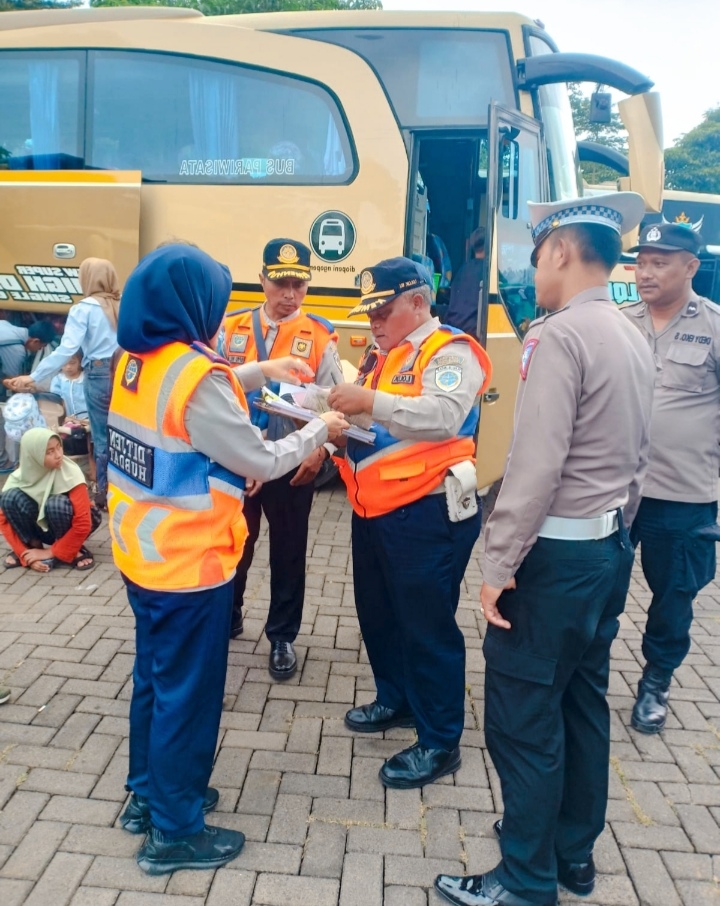 Satlantas Polres Batu, dan Dinas Perhubungan. Bekerja sama untuk, memastikan keamanan, dan kelayakan operasional bus di lokasi wisata, dengan menggelar rampcheck.