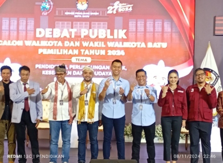 Batu, Pendidikannasional.id – Dalam kelanjutan masa kampanye pasangan calon wali kota dan wakil wali kota Batu tahun 2024,saat ini pada tahap ke dua debat publik tahun 2024 yang bertajuk pendidikan, perlindungan anak,Kesehatan serta kebudayaan. Kegiatan tersebut bertempat hotel Singhasari sekitar pukul 20.00 wib, Jum’at ( 08/11/2024 ).