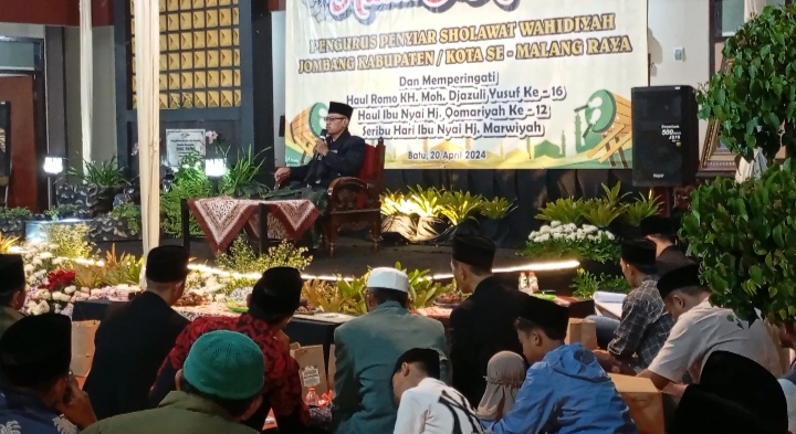 ” Hari ini PSW Kabupaten Malang, Kota Malang dan Kota Batu, ini bukan perpecahan tetapi merupakan sebuah pemekaran yang harus kita laluhi, dan dalam kegiatan ini merupakan sekedar kita ber doa tetapi kita mengingat ingat kembali jasa dari Romo KH. Moh. Djazuli Yusuf dengan ketulusanya , keikhlasanya dalam memperjuangkan dan mengembangkan PSWJ di Malang Raya ini.”
