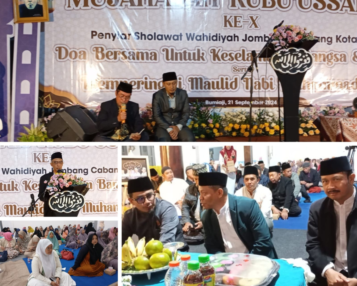 Mujahadah Rubu’ussanah Ke-X, Penyiar Sholawat Wahidiyah Jombang Cabang Kota Batu dengan tema ” Doa bersama untuk keselamatan negara dan bangsa serta memperingati maulid Nabi Muhammad SAW.